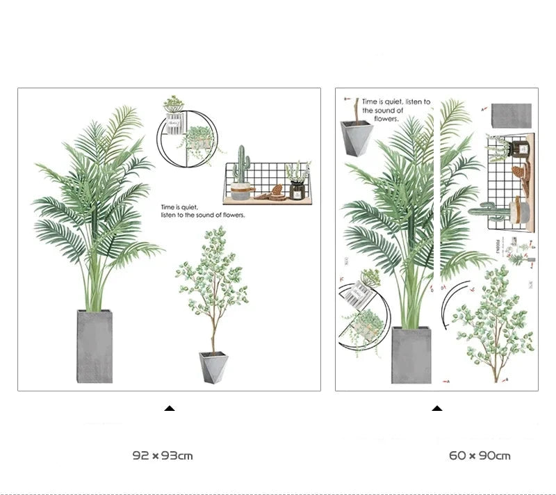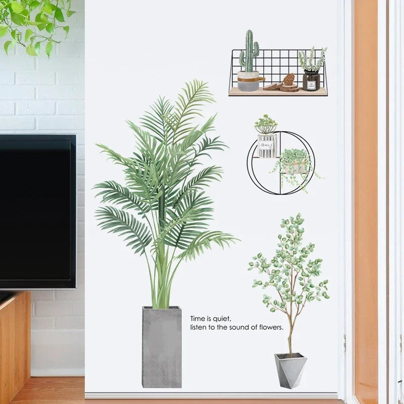 Skapa en lugn och naturlig atmosfär i ditt hem med våra självhäftande krukväxt väggdekaler.