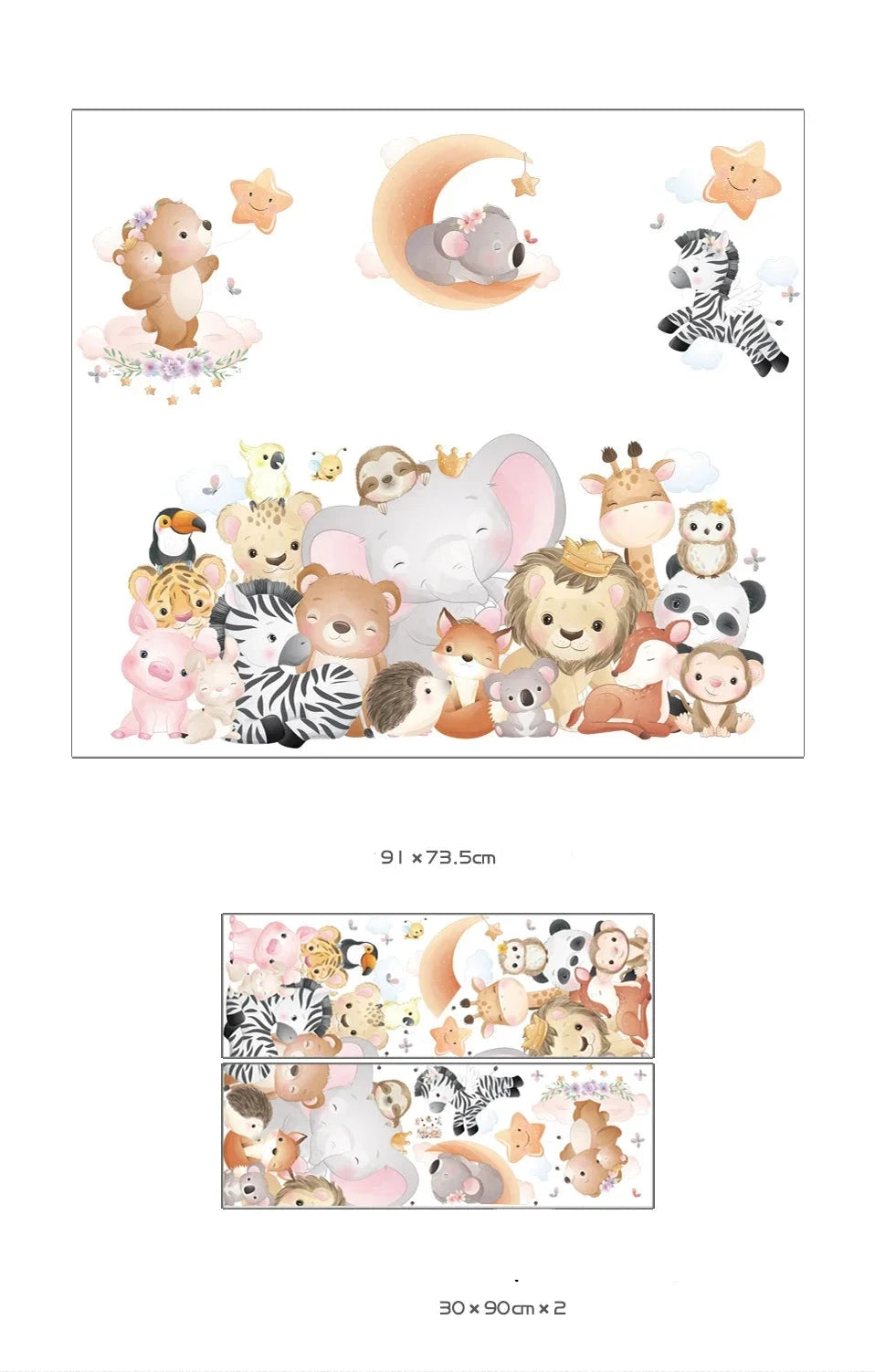 Tecknade djur - Väggklistermärken – Söta dekorer för barnrum