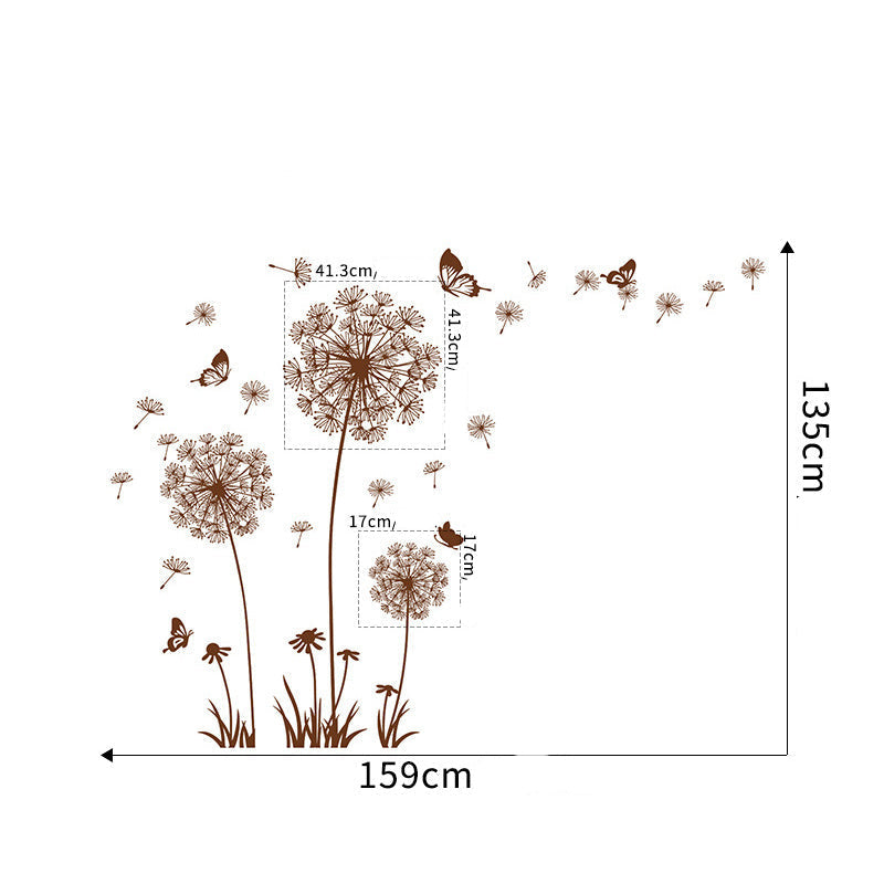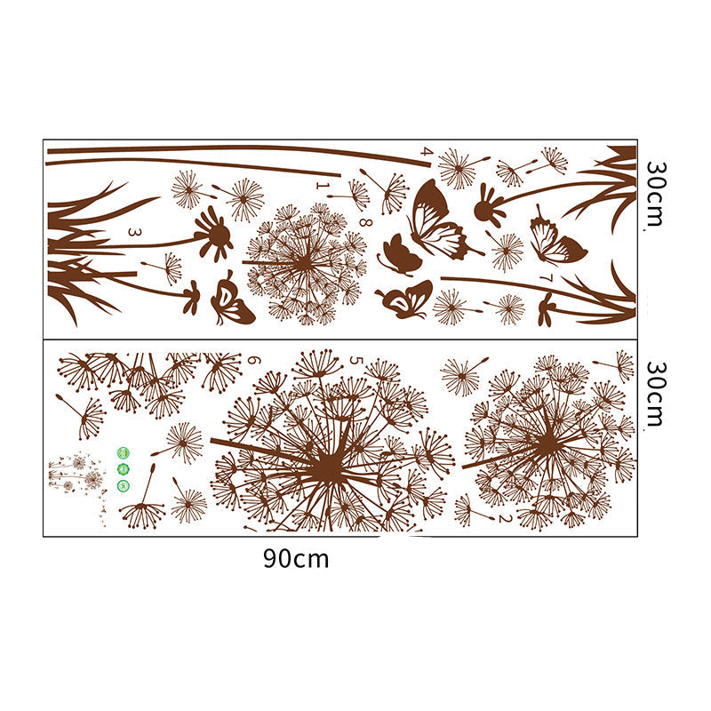 Skapa en lugn och harmonisk atmosfär i ditt hem med denna stilfulla väggdekor med maskrosor och fjärilar. Den eleganta designen i silhuettstil ger en modern touch till vardagsrummet, hallen eller sovrummet. Dekoren är tillverkad av högkvalitativt självhäftande plastmaterial och är enkel att applicera på släta ytor som väggar, plast, kakel och möbler. Den är avtagbar utan att lämna märken, vilket gör den perfekt för både permanent och tillfällig dekoration.