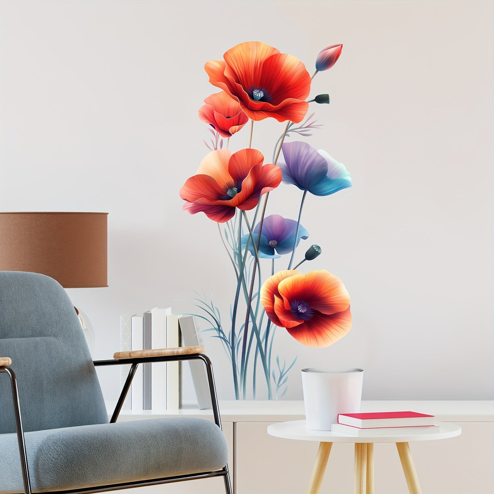 Förvandla ditt rum med denna vackra väggdekal föreställande färgstarka vallmoblommor i en modern och stilren design. Perfekt för att skapa en harmonisk och inspirerande atmosfär i ditt hem.